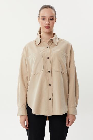 NBW TW BGV 823 CEPLI KADIFE GOMLEK-Taş rengi