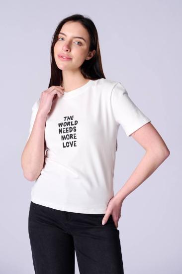 NBW RKH 1011 V YAKA PUL PAYETLI T-SHIRT-Ekru